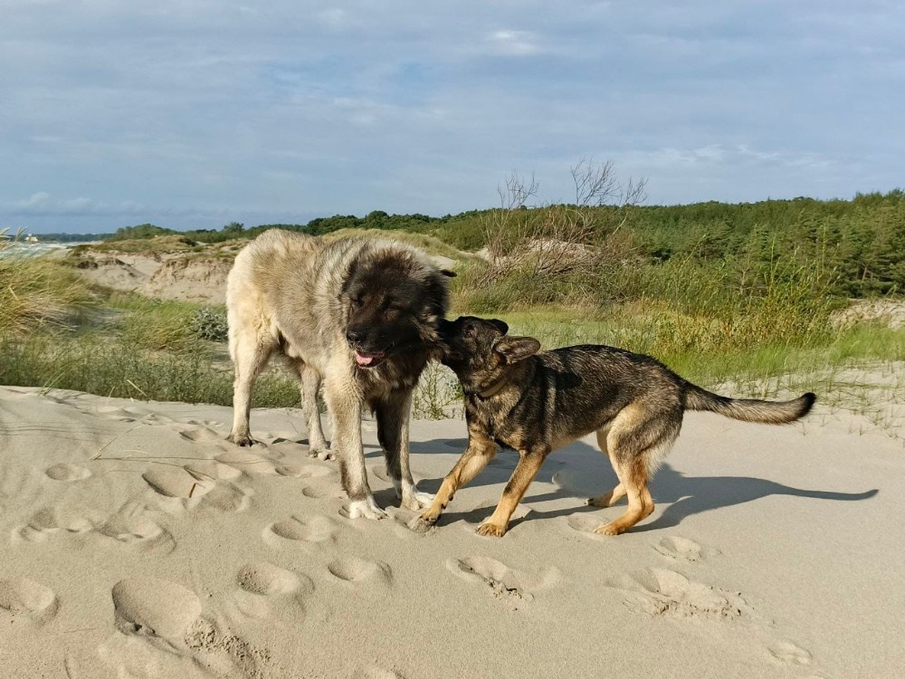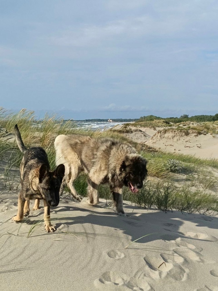 Друзья, всем привет! Прилетел привет от Элвина, который живет в любимом доме с 2016 года, скоро 10 лет! В прошлом году семья переехала в Калининград. Элвин отлично перенес перелет. Фотографии сделаны на Балтийской косе этим летом. В семье появилась вторая собака - девочка щенок ВЕО, собаки очень дружны. Теперь Элвин живет в частном доме и каждый день радостно бесится на участке со своей подопечной Плюхой)). Как видите, Элвин прекрасно выглядит и находится в отличной форме, огромное спасибо за него семье!