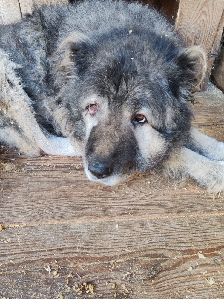 Здравствуйте, друзья! Сегодня показываем лапочку Айлочку. Она лежит грустная совсем с несчастным видом. Но вы не пугайтесь, скорее всего такая реакция на смену погоды, ну и надо учитывать, что она старенькая. При всем она хорошо кушает и даже выходит на улицу. На улице она немножко походит и ложится, а когда нужно идти обратно в вольер, ей помогают туда подняться, самой ей уже тяжко. Наташа дает ей хондропротекторы, чтобы ей было легче двигаться, и наблюдает за опухолью на щеке. Надеемся только на хорошее, пусть живет как можно дольше милая девочка. Большая благодарность замечательным помощникам Айлы!