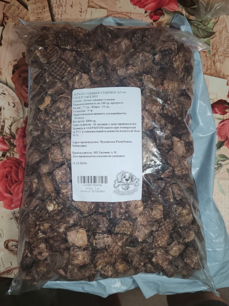 А вот и еще прекрасный подарочек нашим песикам прислали - большой пакет сушеного легкого. Так приятно за наших собачек. Огромное спасибо!